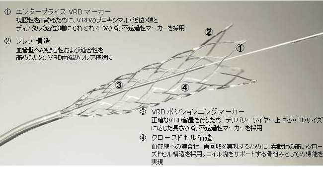 頚部の血管をコイルが収まるように形成するエンタープライズVRD